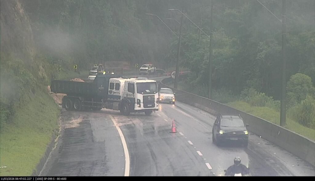 Deslizamento de terra interdita trecho da Rodovia dos Tamoios